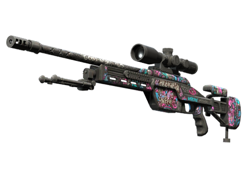 Снайперская винтовка SSG08 со скользящим затвором не наносит много повреждений, однако хорошее соотношение цены и качества делает ее отличным приобретением в первых раундах для перестрелок на дальних дистанциях. Корпус покрыт чёрной основой, на которую нанесены сумасшедшие розовые, голубые и фиолетовые рисунки.