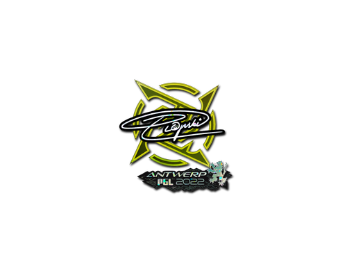Чемпионат по CS:GO: PGL Major Antwerp 2022 (памятный предмет) Эту наклейку можно наклеить на любое ваше оружие, а также её можно скрести, чтобы она выглядела более поношенной. Одну и ту же наклейку можно поскрести несколько раз. Каждый раз она будет выглядеть всё более поношенной, пока окончательно не исчезнет с оружия. Эта наклейка с блёстками подписана профессиональным игроком по имени Николас Гонсалес Самора из команды Ninjas in Pyjamas на PGL Major Antwerp 2022.