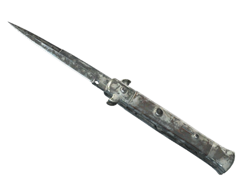 Cтилет — автоматический складной нож в итальянском стиле, который исторически стал предметом споров и даже запретов; его лезвие практически мгновенно выбрасывается при нажатии кнопки-качельки. Рисунок нанесен баллончиком с использованием трафарета из спутанной клейкой ленты.