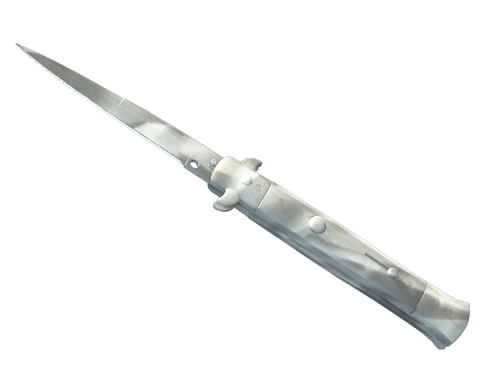 Cтилет — автоматический складной нож в итальянском стиле, который исторически стал предметом споров и даже запретов; его лезвие практически мгновенно выбрасывается при нажатии кнопки-качельки. Рисунок нанесен баллончиком с использованием трафарета из спутанной клейкой ленты.