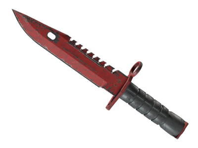 Это штык от М-9. Первоначально предназначался для установки на винтовке, но отлично подходит и для ближнего боя. На отдельные части оружия нанесли водостойкую краску красного цвета, черные узоры паутины и слой полуглянца.
