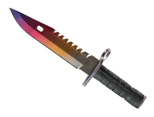 Bu, M9 Bayonet. Asıl olarak bir tüfeğe takılmak için tasarlanmıştır, ayrıca yakın mesafeli çatışmalar için de çok uygundur. Krom ana taban üstünde hava fırçasıyla birlikte solan saydam renklere boyanmıştır.