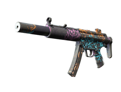 Çok sık taklit edilen ancak eşi benzeri olmayan MP5, dünyadaki hafif makineli silahlar arasından belki de en çok yönlü ve popüler olanlardan biridir. Ölümcül MP5'ın bu SD versiyonu sahip olduğu entegre susturucusu sayesinde fısıltı sessizliğinde çalışır. Neon renkli boya kalemi ile grafiti karalamaları koyu bir taban üzerine uygulanmıştır.