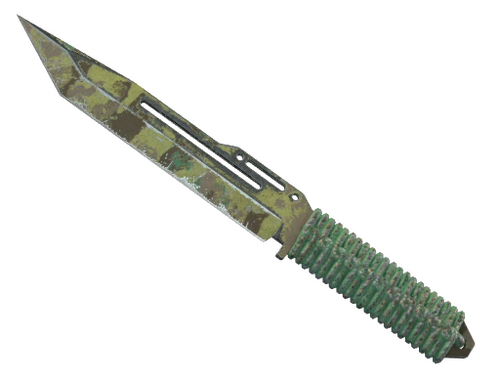 Bu sabit hayatta kalma bıçağı tuzak kurulumu, hayvan avı ya da ot kesme gibi durumlar ortaya çıktığında hem silah hem de bir araç olarak kullanılması için tasarlanmıştır. Bıçağın sapı boydan boya çok amaçlı paraşüt kordonuyla sarılıdır. Orman kamuflajı hidrografisi kullanılarak boyanmıştır.
