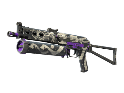Bizon hafif makinelisi düşük hasar verir, ama seri değiştirilebilmesi için özel tasarlanmış yüksek kapasiteli bir şarjör sunar. Bir kedinin uzay sanatı tasviri, siyah ve mor taban üzerine özel olarak boyanmıştır.