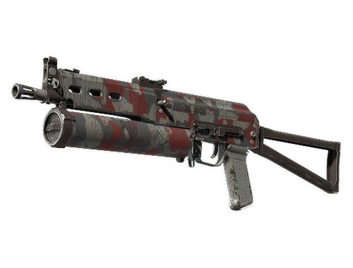 Bizon hafif makinelisi düşük hasar verir, ama seri değiştirilebilmesi için özel tasarlanmış yüksek kapasiteli bir şarjör sunar. Gri ve bordo ahşap desenle boyanmıştır.
