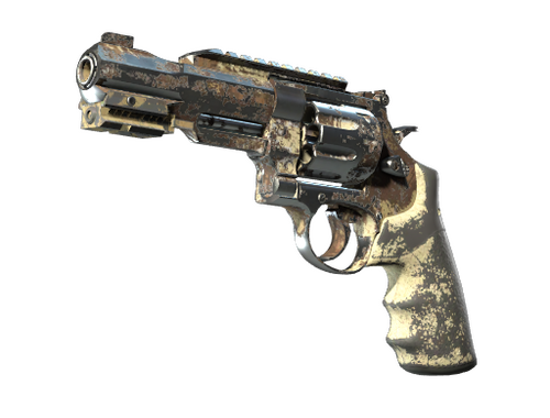 R8 Revolver, uzun bir tetik çekişi pahasına oldukça isabetli ve güçlü bir mermi sağlar. Çok kısa mesafeden durdurucu güç gerektiğinde belki de en iyi seçenek, horozu hızlıca ateşlemektir. Kum renkli hidrografik bir desenle boyanmıştır.