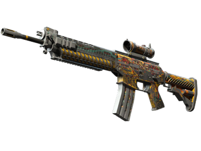 Sadece teröristlere özel bir silah olan SG 553, etkili uzak mesafe çatışmaları için AK-47'nin dürbünlü bir alternatifidir. Turuncu ve sarı bir dalganın üzerine bir kırmızı karınca iskeletiyle ve onun hemen altında gaz maskeleriyle boyanmıştır.