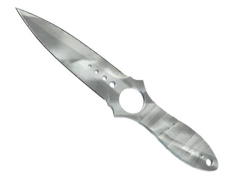 Bu iskelete benzetilen bıçağın kabzası daha iyi bir kavrama için bantla kaplanmış. Kabzasındaki deliğe parmak sokularak daha güvenilir ve kararlı bir kullanım tecrübesi sağlıyor. Şablon olarak dolanmış maskeleme şeridi kullanılarak sprey boyayla boyanmıştır.