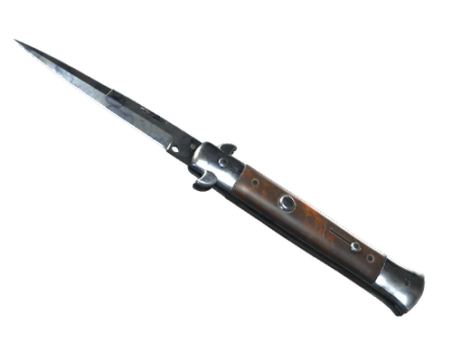 Geçmişten bu yana tartışmalara, hatta düzenlemelere konu olmuş İtalyan tarzı bu stiletto bıçağın normalde gizli duran bıçak kısmı yaylı mekanizması sayesinde tek bir dokunuşla anında ortaya çıkartılabilir. Yüzeyine limon ve hardal damlatarak metal yüzey küflendirilmiştir.