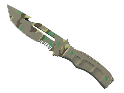Bu çok amaçlı taktisel bıçakta kemik ya da lif gibi kalın malzemelerin içinden doğrudan geçmesine olanak tanıyan testere dişli bir bıçak ve bu bıçağın ucunda da deşme kancası yer alıyor. Kompozit bir malzemeden imal edilen sapı, bıçağa altıgen somunlar kullanılarak cıvatalarla tutturulmuştur. Orman kamuflajı hidrografisi kullanılarak boyanmıştır.