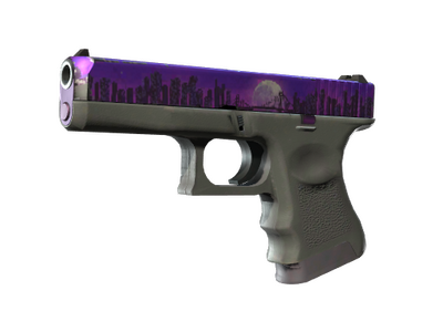 Glock-18 zırhsız düşmanlara karşı kullanışlı bir ilk raunt tabancasıdır ve üçlü atış yapabilir. Ön planda yer alan rastgeleleştirilmiş şehir manzarası, ay ve mor gece göğünü öne çıkartır.