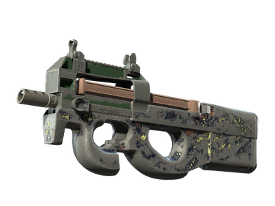 Benzersiz bullpup tasarımı sayesinde kolayca hatırlanabilen, yüksek kapasiteli şarjörüyle ve düşük geri tepmesiyle P90, hareket halindeyken vurmak için mükemmel bir silahtır. Çizgi film dinozorlarının tasvir edildiği zeytin ve altın renkli hidrografik bir desenle boyanmıştır.