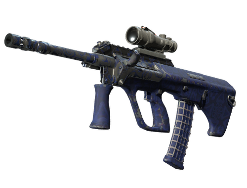 Потужна і точна гвинтівка з оптичним прицілом АУГ компенсує своє тривале перезаряджання низьким відхиленням куль та високою швидкістю стрільби. Аквадруком нанесено візерунок із синього венеційського бісеру.