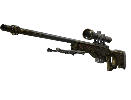 Високі ризики й висока нагорода — сумно відома снайперська гвинтівка АВП легко впізнається за характерним звуком та принципом «один постріл, один труп». Нанесено зображення з червоною основою й золотою філігранню.