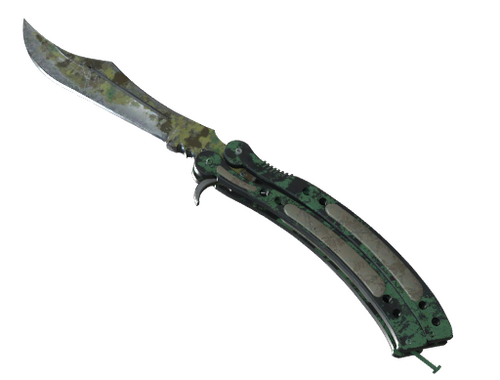 Це спеціально розроблений балісонг, також відомий як ніж-метелик. Визначальною характеристикою цієї зброї є легке розкриття вільного в обертанні леза віялоподібним рухом, що дозволяє швидко оголити та приховати лезо. Через це ножі-метелики заборонені законами багатьох країн. Аквадруком нанесено текстуру лісового камуфляжу.