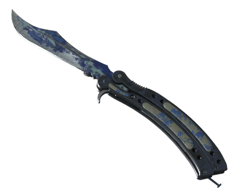 Це спеціально розроблений балісонг, також відомий як ніж-метелик. Визначальною характеристикою цієї зброї є легке розкриття вільного в обертанні леза віялоподібним рухом, що дозволяє швидко оголити та приховати лезо. Через це ножі-метелики заборонені законами багатьох країн. Аквадруком нанесено синій камуфляж.