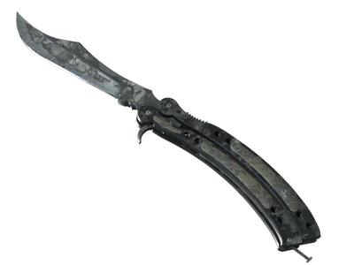 Це спеціально розроблений балісонг, також відомий як ніж-метелик. Визначальною характеристикою цієї зброї є легке розкриття вільного в обертанні леза віялоподібним рухом, що дозволяє швидко оголити та приховати лезо. Через це ножі-метелики заборонені законами багатьох країн. Аерозольним балончиком нанесено малюнок за допомогою трафарету зі сплутаного скотчу.