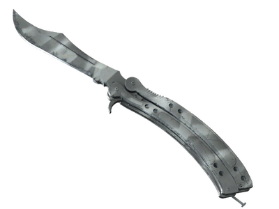 Це спеціально розроблений балісонг, також відомий як ніж-метелик. Визначальною характеристикою цієї зброї є легке розкриття вільного в обертанні леза віялоподібним рухом, що дозволяє швидко оголити та приховати лезо. Через це ножі-метелики заборонені законами багатьох країн. Аерозольним балончиком нанесено малюнок за допомогою трафарету зі сплутаного скотчу.