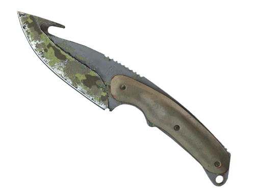 Найпримітнішою особливістю білувального ножа є гак на зворотній стороні леза. Спочатку застосовувався як допоміжний засіб зняття шкіри у тварин, але не менш ефективний для прорізування волокнистих матеріалів, як-от мотузок, тканих стрічок чи ременів безпеки. Аквадруком нанесено текстуру лісового камуфляжу.