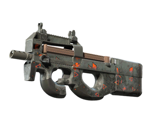 Легко впізнаваний за унікальним дизайном булпапа, П90 — це чудова зброя для стрільби в русі завдяки високій місткості магазина та малій віддачі. Зброю було розмальовано в контрастні помаранчевий, сірий та чорний кольори.