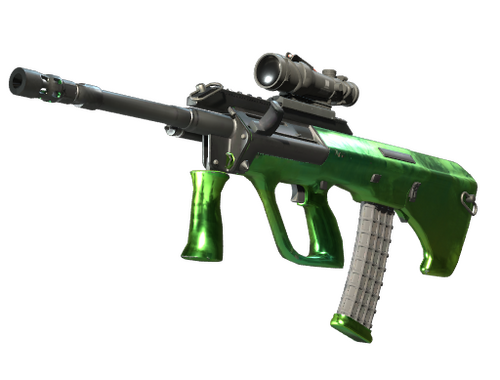 Цей предмет нагадує про Великий турнір із CS2 «BLAST.tv Остін 2025». Цей предмет випав під час матчу на стадії Етап III між Legacy і Virtus.Pro. Потужна і точна гвинтівка з оптичним прицілом АУГ компенсує своє тривале перезаряджання низьким відхиленням куль та високою швидкістю стрільби. На основу було нанесено хромове покриття, а потім пофарбовано ледь не прозорим шаром нефритово-зеленої фарби, щоби створився ефект анодованого металу.