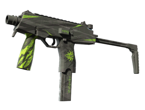 Цей предмет забезпечується технологією СтатТрек™, яка відстежує певну статистику власника. Вироблений у Швейцарії передовий пістолет-кулемет МП9 — це ергономічна полімерна зброя, яку полюбляють приватні охоронні фірми. Нанесено зображення динамічних і різких фігур, а також стилізований малюнок павука.