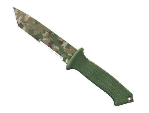 Цей предмет забезпечується технологією СтатТрек™, яка відстежує певну статистику власника. Тантоподібний ніж для виживання має грановане лезо, широкий хвостовик, а також руків’я для завдання ударів. Немає зайвих дрібниць, немає рухомих частин – просто надійне лезо, готове до роботи. Аквадруком нанесено текстуру піксельного камуфляжу.