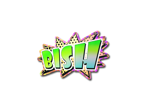 Ця наліпка прикріплюється на будь-яку вашу зброю. Її можна пошкрябати, аби вона виглядала більш зношеною. Ви можете шкрябати наліпку кілька разів, щоразу роблячи її обшарпанішою, аж доки вона не відпаде зі зброї. Bish (Holo)