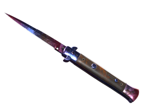 Італійський ніж-стилет, який можна витягти практично миттєво завдяки пружинному механізму (просто натисніть кнопку фіксатора), став предметом багатьох дискусій, і він нерідко заборонявся. Нанесено зображення чорною і срібною фарбою під мармур, а потім вкрито градієнтом.