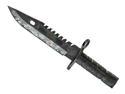 Це американський штик-ніж М9. Спершу призначався для встановлення на гвинтівці, але добре підходить і для ближнього бою. Аерозольним балончиком нанесено малюнок у вигляді випалених сонцем плям.
