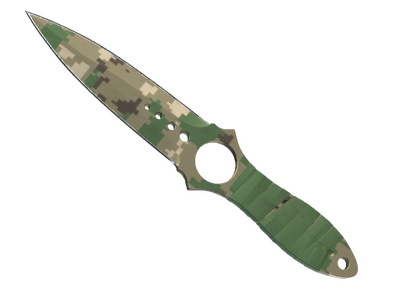 Обмотане скелетоподібне руків’я цього ножа забезпечує кращий хват. Отвір для пальця забезпечує стабільність і безпеку. Аквадруком нанесено текстуру піксельного камуфляжу.