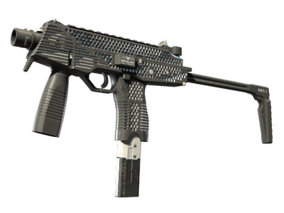 Вироблений у Швейцарії передовий пістолет-кулемет МП9 — це ергономічна полімерна зброя, яку полюбляють приватні охоронні фірми. Нанесено зображення за допомогою чорного і білого кольорів для пористого вигляду, що ніби зменшує вагу зброї.